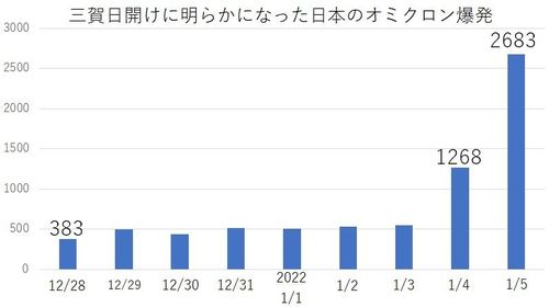 統計上、2022年1月4日に日本のオミクロン爆発は確認できます。