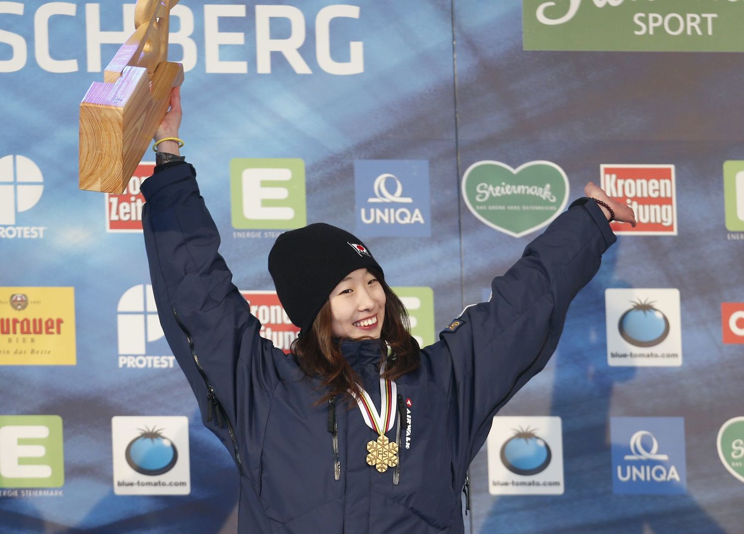 2015年1月21日、スノーボード世界選手権スロープスタイル女子、鬼塚が史上最年少優勝 写真=AP/アフロ