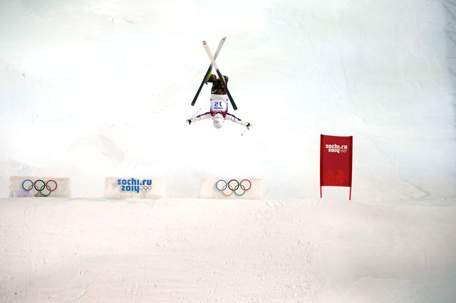 2014年2月8日、ソチ五輪モーグル女子決勝での上村愛子 写真:青木紘二/アフロスポーツ