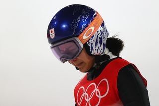ショートトラック男子1000メートル決勝でトップでゴールインした後に、反則による失格の判定に呆然とするハンガリーのシャオリンサンドル・リュウ(左)。彼の後にゴールした中国の任子威が金メダル、同じく中国の李文竜が銀メダルを獲得した(写真:ロイター/アフロ)