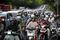 今年1月26日に撮影された、「東南アジア最悪」とされるジャカルタの朝の通勤ラッシュの様子。道路が車とバイクで埋め尽くされている(写真:AP/アフロ)