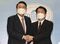 3月3日、大統領選での野党候補一本化を発表し、握手する尹錫悦氏(左)と安哲秀氏(写真:AP/アフロ)