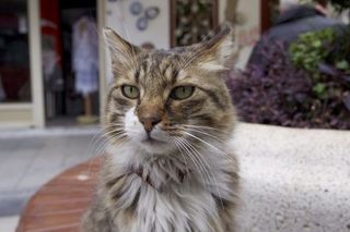 視線を感じて見上げると、可愛い顔の猫がじっとこちらを見つめていました。