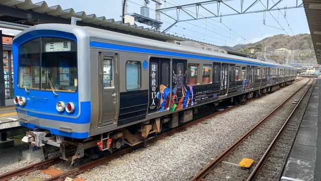 大河ドラマ「鎌倉殿の 13 人」ラッピング電車 写真=伊豆箱根鉄道