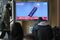 3月25日、韓国・ソウル駅の街頭ビジョンで、北朝鮮のICBM発射についてのニュースを見つめる韓国の人々(写真:AP/アフロ)