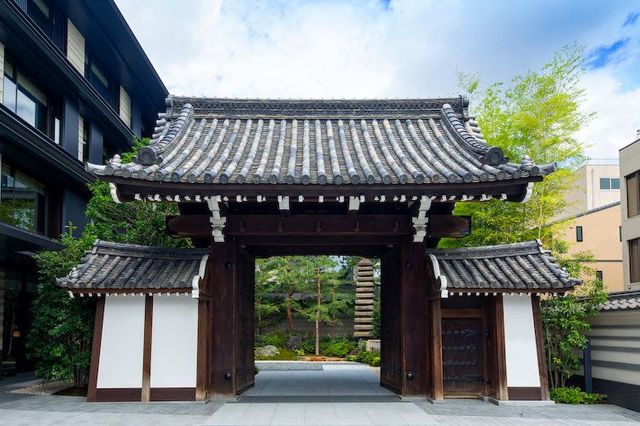 この門、1698年、当時は梶井宮と呼ばれていた、現在は京都市左京区大原にある『三千院』が、京都御所のそばの河原町今出川に移された際に、その門として1703年に造られ、1935年に、油小路邸の門として移されたものだそうだ。そして、ホテルとしての新生にあたって、また少し移動するとともに、1935年以来の修理が行われた。外観はキープ。それまでの部材を80%以上残しながら、安全性や耐震性などを現在基準にアップデートしているという。現在、国の登録有形文化財(建造物)だ。