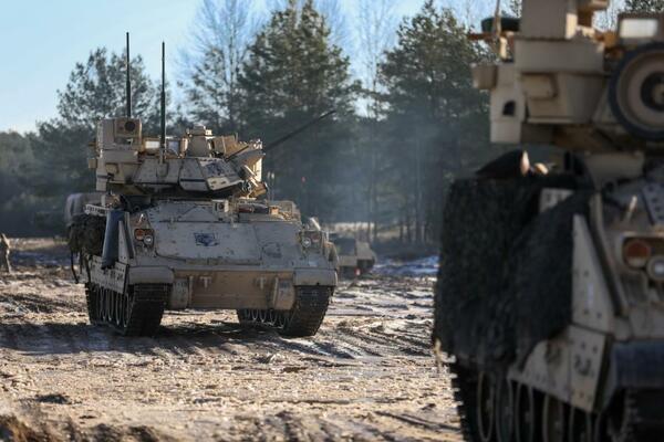 ポーランドに配備されている米陸軍の「M2ブラッドレー戦闘車」(1月22日撮影、米陸軍のサイトより)