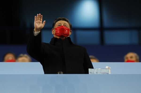 北京パラリンピック閉会式で手を振る中国の習近平国家主席(2022年3月13日、写真:ロイター/アフロ)