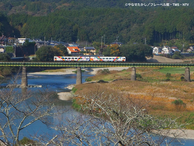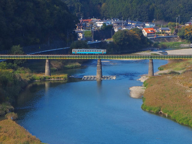 私が大洲城を訪れた日は、残念ながら「伊予灘ものがたり」の運行日ではなかったのですが、普通列車や予讃線宇和海アンパンマン列車が肱川を渡っているのが見られました。