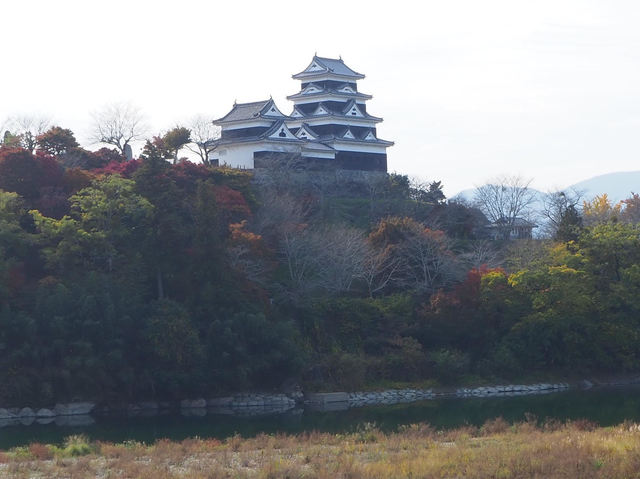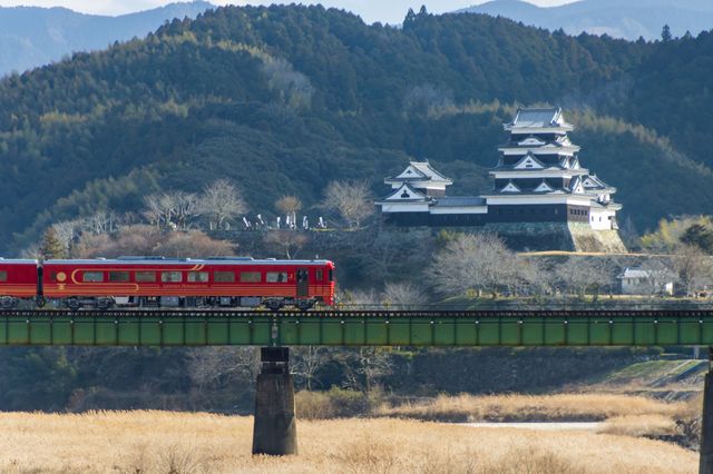 大洲城は肱川の河畔の丘の上に築かれた平山城で、愛媛県最大の河川であり清流として知られる肱川を天然の堀として利用しています。この肱川を「伊予灘ものがたり」が渡っていくのが、大洲城からはよく見えるというわけです。