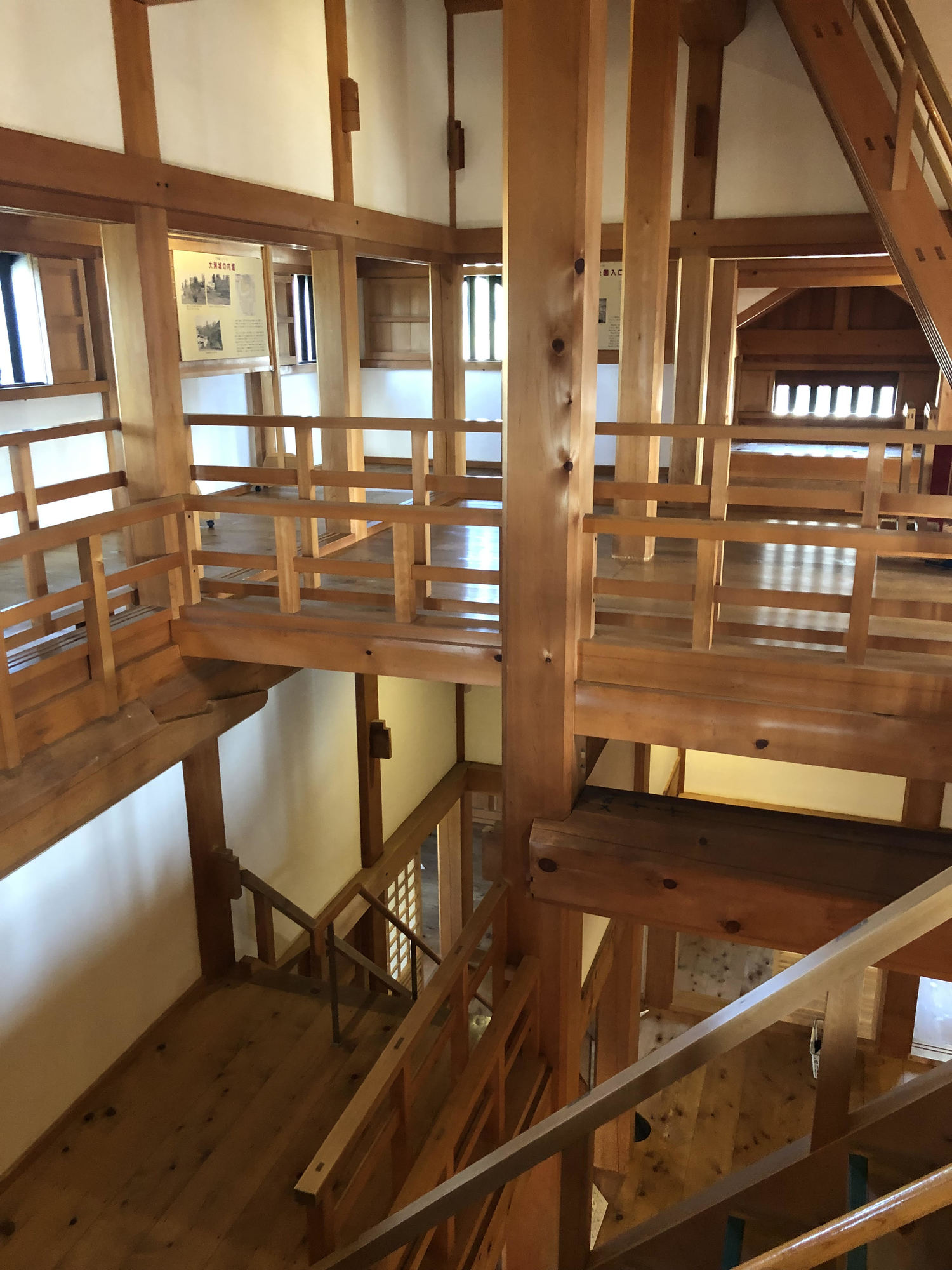ヒノキの香が漂う天守の城内。柱材のほとんどは地元の方々の寄付木だそう