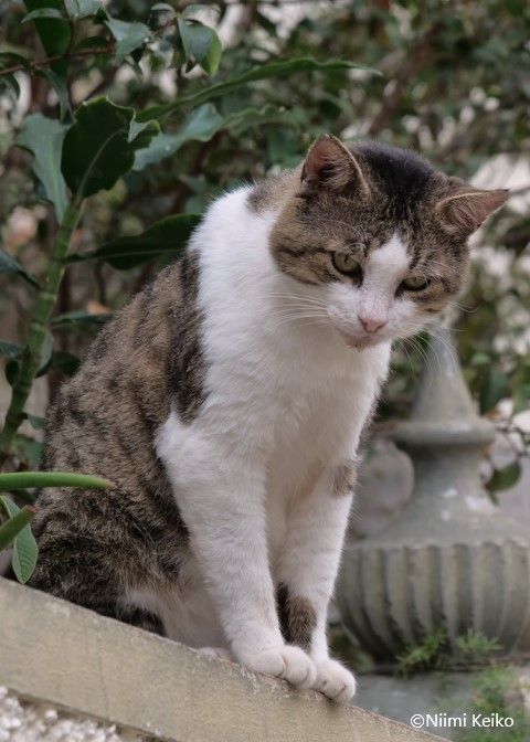 小さな繁華街の裏手にある小さな住宅街。細い路地を歩けば、猫たちの姿がありました。あとから写真を見て気がついたのですが、この猫、かわいいチャームを付けていました。これをアップで撮ればよかったと反省しています。