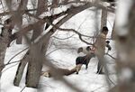 今年(令和4年)の3月、シーズン最後の猟で最後に獲ったメス鹿を、師匠が回収しに行った時のこと。私は撮影のため、深い雪の中をボコボコと何度も埋まりながら進んでいたら、ダーーーーン、ダーーーーーーンとこだまする、そう遠くない発砲音がした。日没が近く、辺りが暗くなってきた頃だった。
