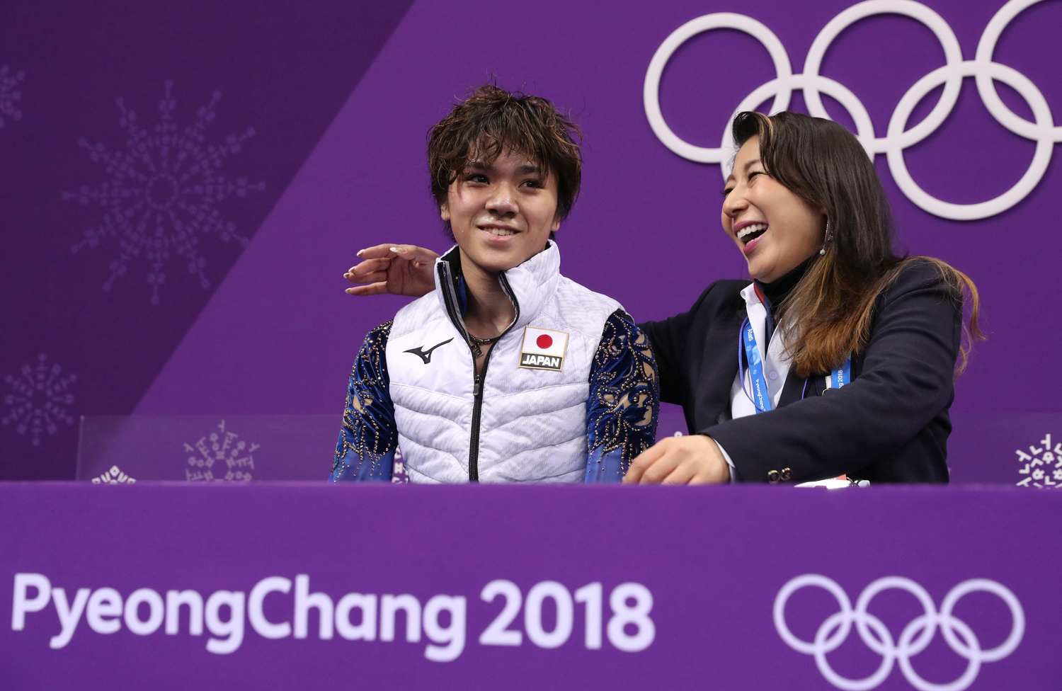 2018年平昌オリンピックで銀メダルを獲得した宇野昌磨と樋口美穂子コーチ 写真:ロイター/アフロ