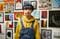 展覧会場の片隅で似顔絵を描く門土さん