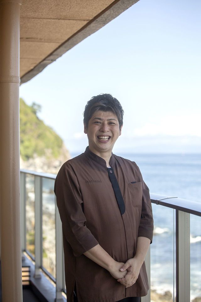 「露天風呂付き客室から予約が埋まる」と話す副支配人の藤城智之さん。絶景の特別感に加えて、昨今は安心感とプライベート感がより好まれる。