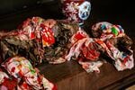 オシラサマには、古い布が幾重にも巻き付けられている。内側の布は変色している