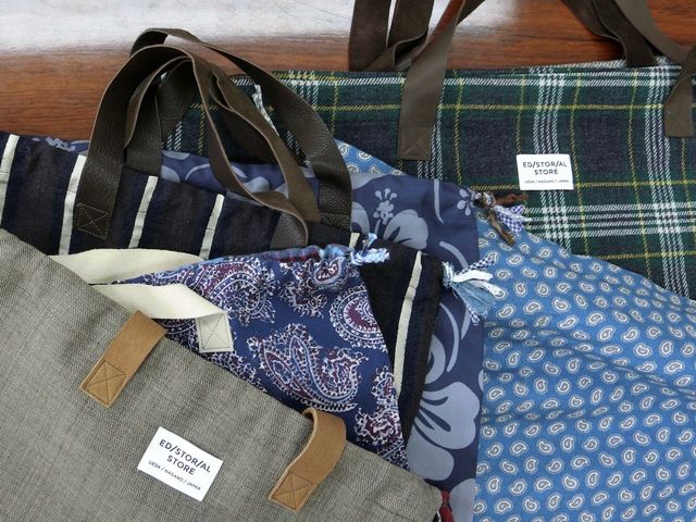 ご覧の通りさまざまな生地が使われている「EDISTORIAL STORE」の#残反ショッパープロジェクト。ウール地からシルクのネクタイ生地まで賑やかなバリエーションが楽しい