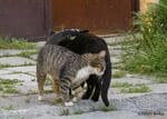 そんな様子を見ていた猫。このあと、ボクサーくんの前を通り過ぎましたが、ボクサーくんはまったく反応しませんでした。