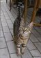 わたしもカフェの椅子に座ると、さっきの猫がシッポをあげて近づいてきました。話しかけたのが日本語だったせいか、キョトンとしていました。