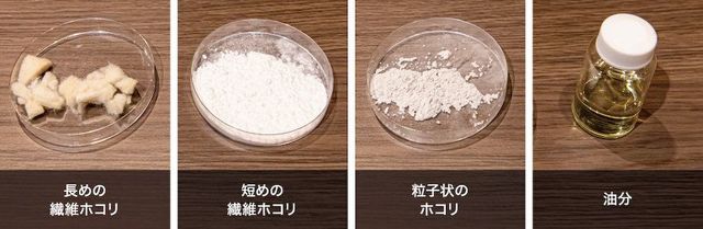 パナソニックがまず取り組んだのは、ホコリの研究だ。キッチン、寝室、リビングなど、さまざまな場所で使われているエアコンだが、その内部の汚れ方やホコリの付き方は複雑だ。そこで、全国100軒以上の家庭から実際に使われているフィルターを取り寄せて、ホコリの種類や性質を分析。その結果、ホコリには3種類あり、それがブレンドされたうえに油分を含んだ状態で付着していることが分かった。