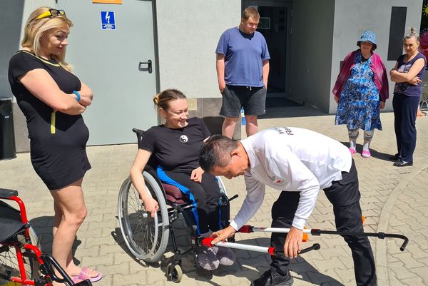 ルブリンではウクライナから避難してきた障害者とその家族の短期宿泊施設も訪れた。ここにはロシア軍の攻撃を逃れるため原発があるザポリージャ州から集団避難してきた約20人が一時滞在している。列車が混んでいたため、使い慣れた歩行器や車イスを持ち出せなかった。全員が介護者や救急隊員に抱きかかえられて列車の座席やベッドに乗せられたという。