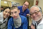フューチャー・フォー・ウクライナのオレナ・ソーティニク副会長(中央左)にJINRIKI QUICKを寄付する中村氏(花岡凌氏撮影)