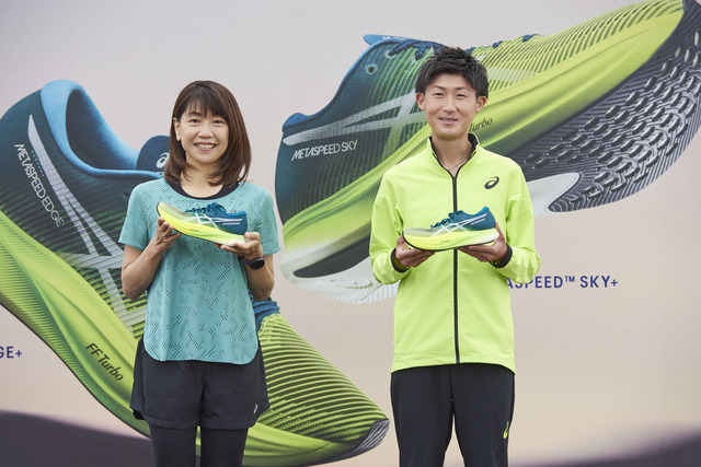 イベントにはシドニー五輪女子マラソン金メダリストの高橋尚子さんと、METASPEEDを着用して昨年2月のびわ湖毎日マラソンで日本歴代6位の2時間6分35秒をマークした細谷恭平選手(黒崎播磨)が登場。ふたりともピッチ型のランナーだが、高橋さんはピッチ型の「EDGE+」、細谷選手はストライド型の「SKY+」が好みだという。