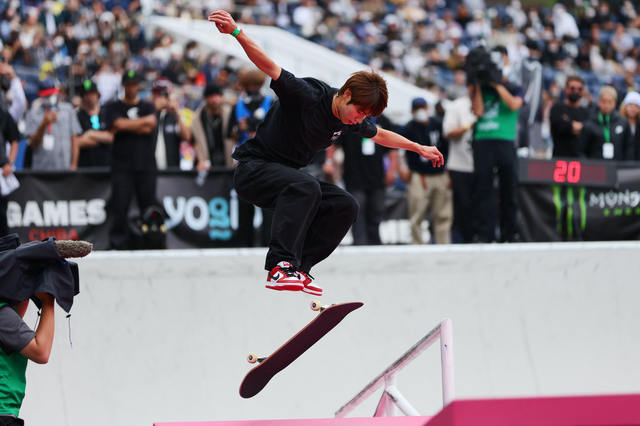 2022年4月24日、「X GAMES 千葉」スケートボード男子ストリート決勝での堀米雄斗 写真=森田直樹/アフロスポーツ