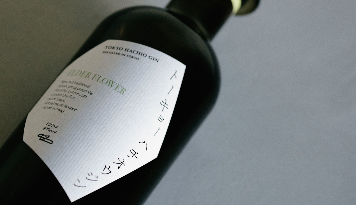 まず目を惹くのは、スタイリッシュなその姿、薬瓶のようなボトルに、八王子の“八”からイメージしたという八角形のすっきりとした美しいデザインのラベルは、今まで見たクラフトジンとは一線を画します。カタカナで表記した商品名は、どこかノスタルジックな雰囲気も漂わせ、さまざまなものが混在する東京を感じさせます。ロゴマークにはトロンボーンの原型というサックバットが使われ、トロンボーン奏者でもある彼の音楽への思いも感じさせてくれます。