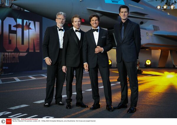 『トップガン マーヴェリック』のロンドンプレミアに登場したトム・クルーズ(右から2人目)(2022年5月19日、写真:REX/アフロ)