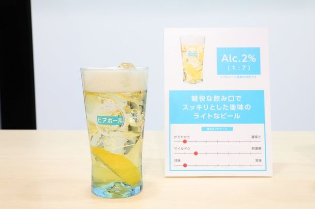 もっともベーシックなバランスが、『ビアボール』1に対して炭酸水3、つまりアルコール度数4%になるバランスとされている。これだと、通常のビールより、ややライトなアルコール度数で、実際、ビールテイストながら爽やかな味わいになっていた。