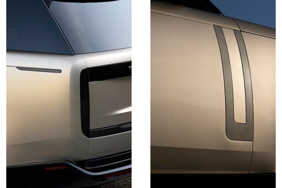 このフラッシュサーフェイス・ボディをさらに強調しているのが、シャットラインの少なさである。シャットラインとは、ボディパネルとボディパネルのつなぎ目のこと。普段はあまり気にも留めない部分だが、シャットラインを減らせばボディ全体がひとつの面で構成されている印象がさらに強まる。新型レンジローバーのデザインが、まるでタマゴの殻のように見えるのは、このためといっていい。