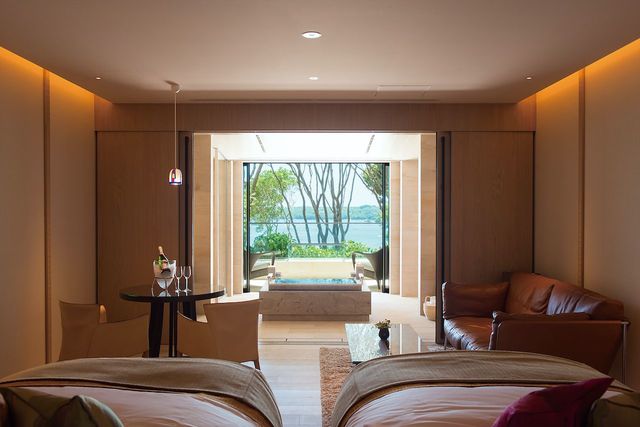 伊勢志摩の恵みを五感で楽しめる、温泉付きのオーベルジュだ。オーベルジュとは宿泊施設併設レストランで、滞在しながら極上の料理を堪能できる。ホテルがある賢島へは、近鉄の大阪難波駅、京都駅、近鉄名古屋駅から直通の特急列車で行ける。車は伊勢西ICから40分ほど。