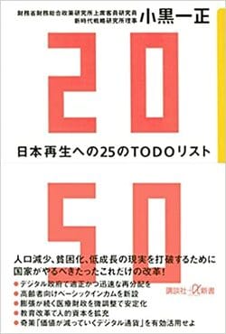 タイトルは『2050 日本再生への25のTODOリスト』(講談社+α新書)。著者は法政大学の小黒一正教授で、行政と学会を横断し、政界や財界とも対話しながら、これまで数々の政策立案にも関わり地道な改革を訴えてきた人物だ。