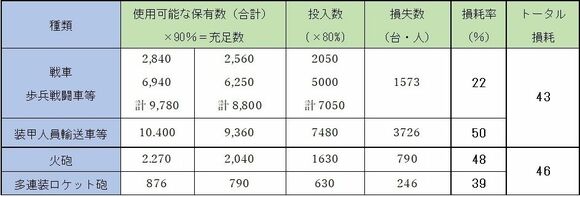 一方で、ウクライナ参謀部の発表によれば、6月末までにロシア軍戦車軍団の戦車・装甲歩兵戦闘車を約1600両(投入数の22%損耗)、装甲兵員輸送車等を3700両(50%損耗)合計5300両(43%損耗)、火砲・多連装砲合計の約1040門(46%損耗)を破壊した。