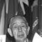 国際勝共連合の東京会議で発言する故安倍晋三氏の祖父・岸信介元首相。この組織は文鮮明と岸信介が中心に作ったという(写真:橋本 昇)