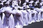 スタンドには花婿、花嫁の家族の姿があったが、母親たちは我が子の姿を探し、そして「アイゴー!」と何度も叫び泣き崩れていた。怒りを噛み殺すように頬の筋肉を痙攣させている父親もいた。式が終了し、場外で家族の話を聞いた。