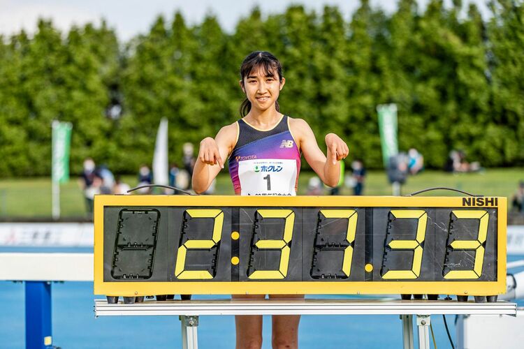 2022年6月22日、 ホクレンディスタンス20周年記念大会、女子1000mで田中が日本新 写真=西本武司/アフロ