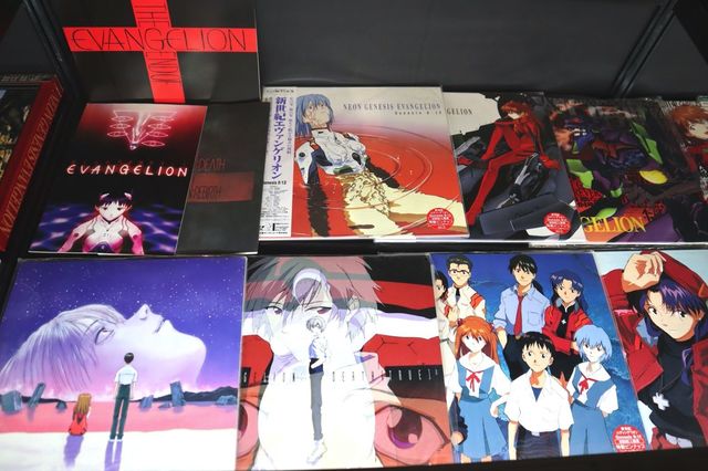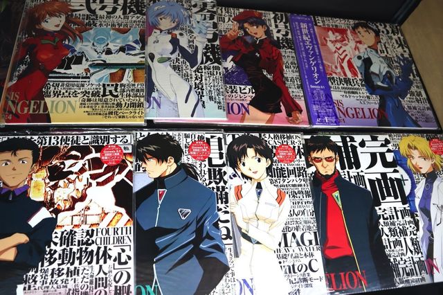 会場に入るとまず公式の映像媒体および資料集等が展示されている。これがいわゆる「エヴァらしいデザイン」の根幹ということなのだろう。TVシリーズから完成された唯一無二のデザインは今だ色褪せることはない。特に秀逸なのはTVシリーズのレーザーディスク盤だろう。極太明朝体で名台詞が散りばめられたこのジャケットにエヴァらしさが集約されている。