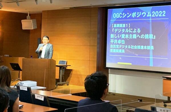 基調講演する平井卓也・自民党デジタル社会推進本部長(筆者撮影)