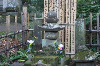 鎌倉の妙本寺にある一幡の供養塔。石塔は後世のものだが献花が絶えない