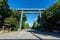 神社の入り口では反戦デモ隊が右翼団体と大騒ぎだ。