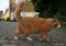 平日の早朝、大きなオレンジ色の猫が堂々と歩いていました。しっぽを高々と上げて、気分がよさそうです。