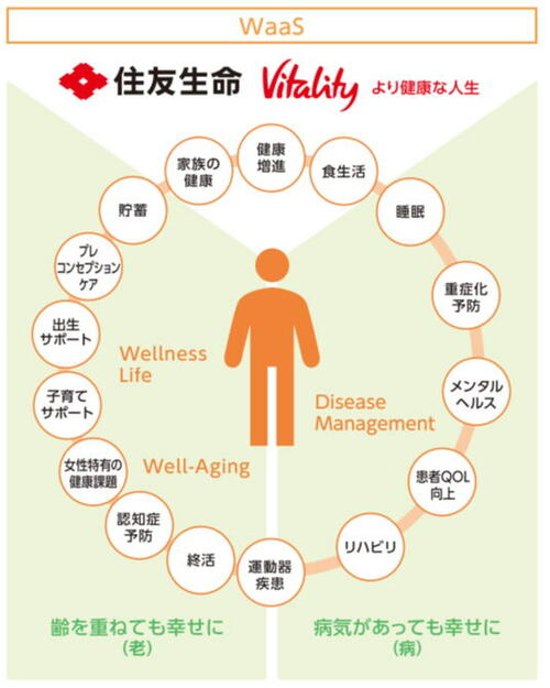 藤本 課題もあります。下の図は社長の高田がVitalityの世界観を拡張してWell-Beingな世の中を実現するために提唱しているWaaSのビジョンです。上方の白い部分はVitalityで実現できますが、それだけで十分なのか。よくウェルビーイングの定義として“身体的、精神的、社会的に完全に満たされた状態”と言われますが、そんな完璧な人は多くないと思います。