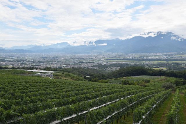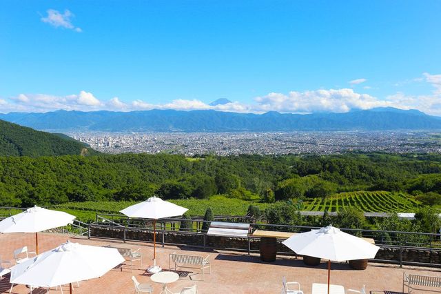 到着してすぐがワインショップになっていて、その先には富士山を背にした甲府の街が一望できる「富士見テラス」。ここが拠点になる。
