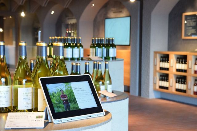 画像右手前にあるのが試飲用のワインサーバー。専用のカードにチャージして使う。
