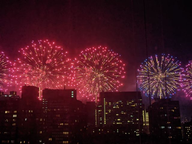 7月4日独立記念日の花火大会 ニューヨーカーが楽しみにしていた独立記念日の花火大会も無事に終わった。花火の下で宗教や人種の違いを忘れニューヨーカーは今年もこの花火を見れたことに感謝した