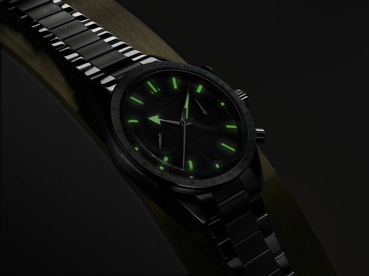 針とインデックスには、グリーンに発光する“ヴィンテージ”スーパールミノバが塗布されている