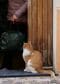 石畳の狭い路地が続く旧市街、家のドアの前で猫が座っていました。飼い主さんの帰りを待っているのでしょうか?